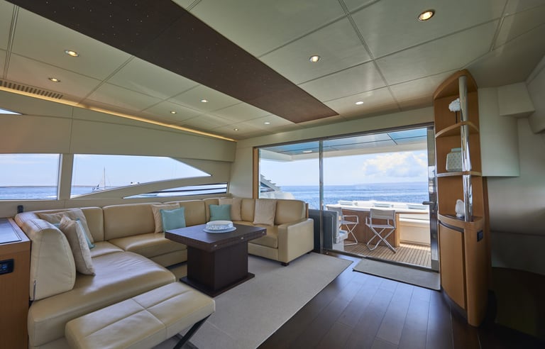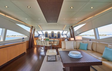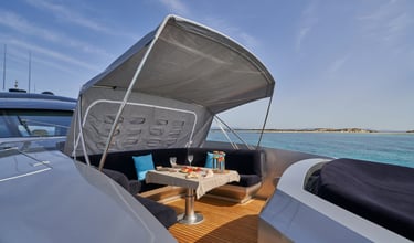 Gracias a su escaso calado, la Pershing 90 te permite fondear donde otros no pueden: en el corazón de las calas más vírgenes y exclusivas. Ya sea para una fiesta sofisticada en cubierta o para una travesía rápida entre islas, este yate garantiza una experiencia de charter inolvidable, respaldada por una tripulación profesional dedicada a superar tus expectativas.
