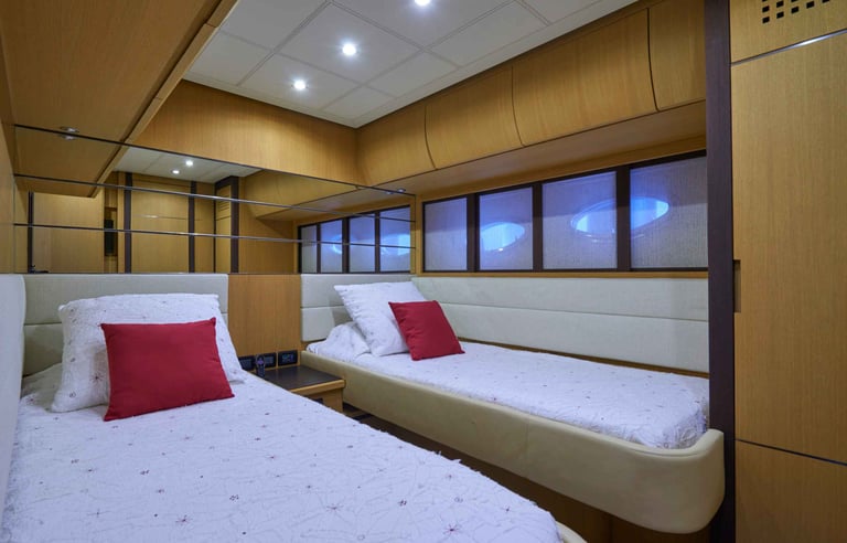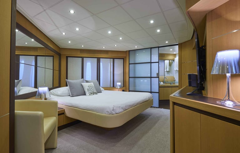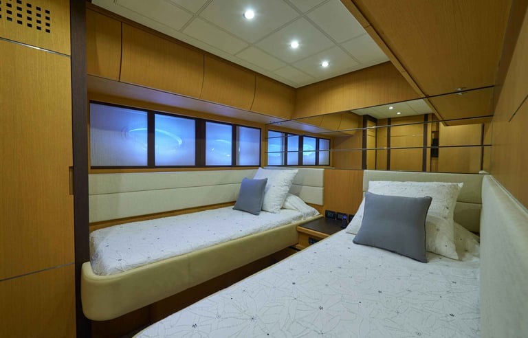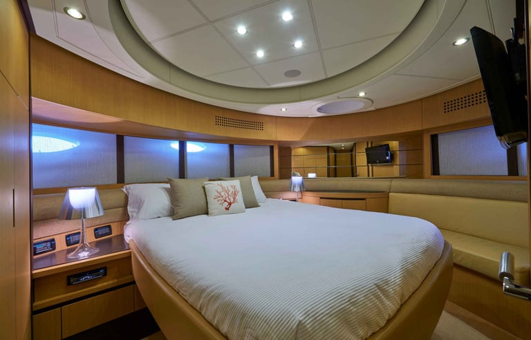 Alojamiento Premium: 4 camarotes de ensueño con capacidad para 8 invitados, donde la luz natural y los materiales nobles son los protagonistas.